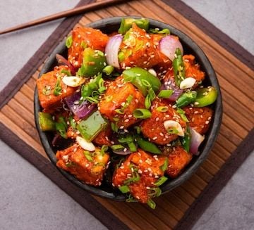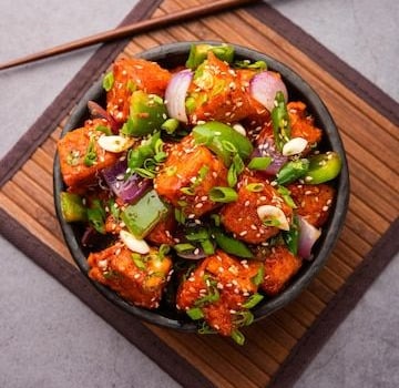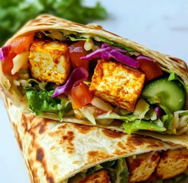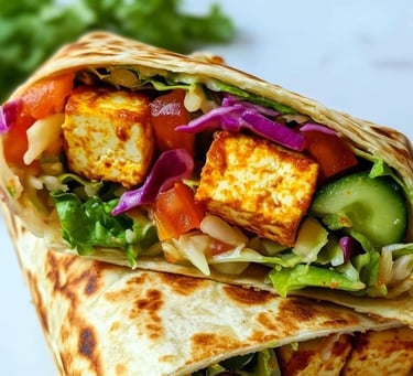 Paneer cubes in exotic sauce with veggies and spices in a tortilla